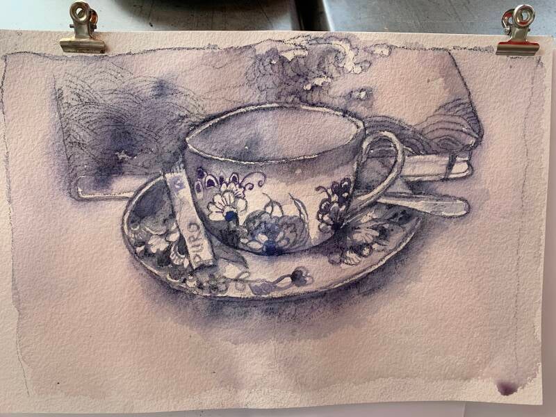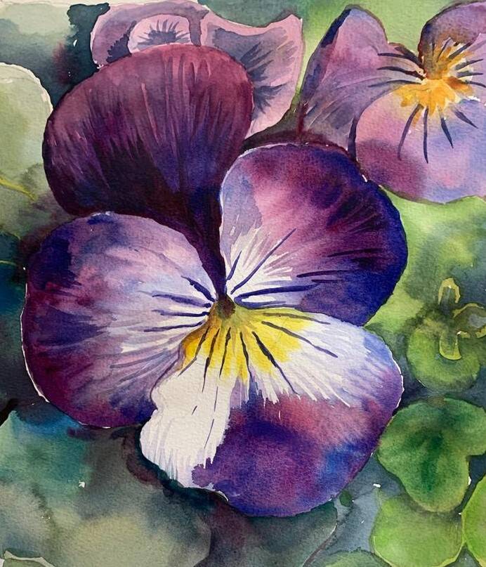 Aquarel Maarts viooltjes n.a.v. kooroptreden Texel 2021