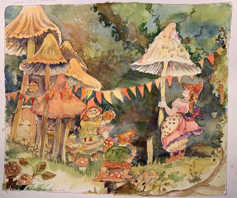 Ontwerp illustratie kabouter viert verjaardag