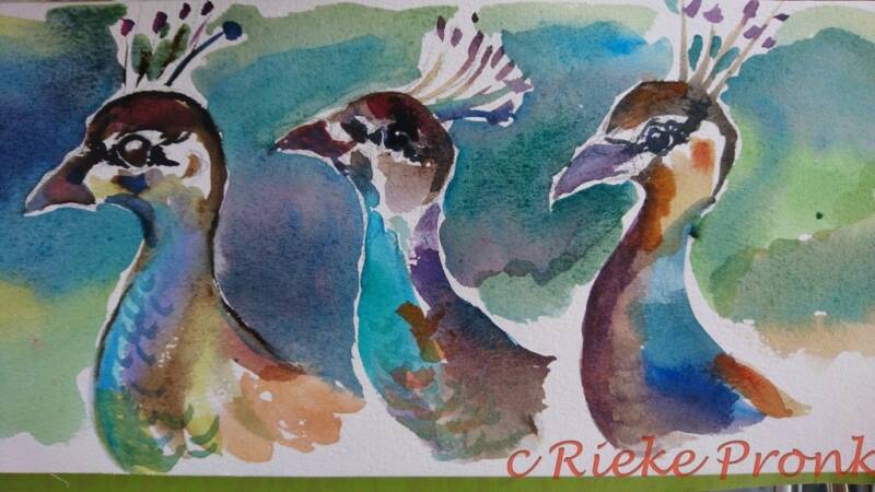 Aquarel Pauwen kinderboerderij Delft , studie tekenen naar waarneming 2019