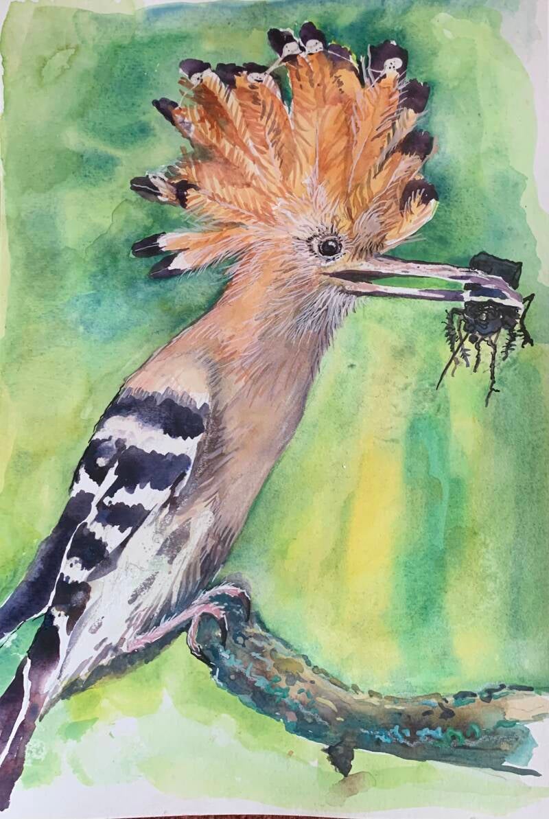 Hommel, aquarel met dekkende gouache verf. 30x20cm