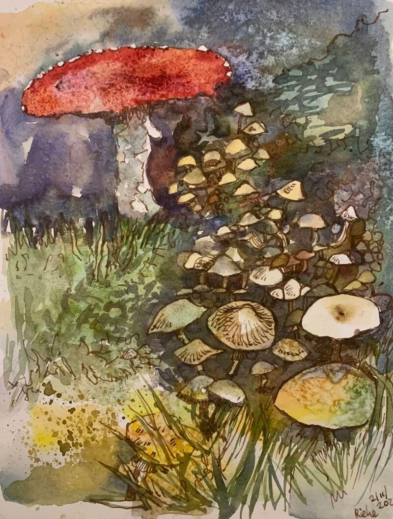 Drieluik, aquarel, inzending expositie "Schitterend leven tussen de scherven" Zuiderkerk 2013
