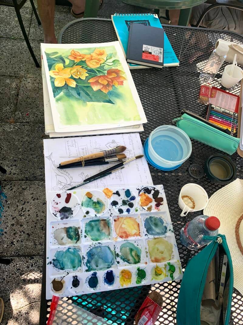 Mijn aquarel uitrusting, foto in Belt- Schutsloot, schildersvakantie bij Riny Bus 2022